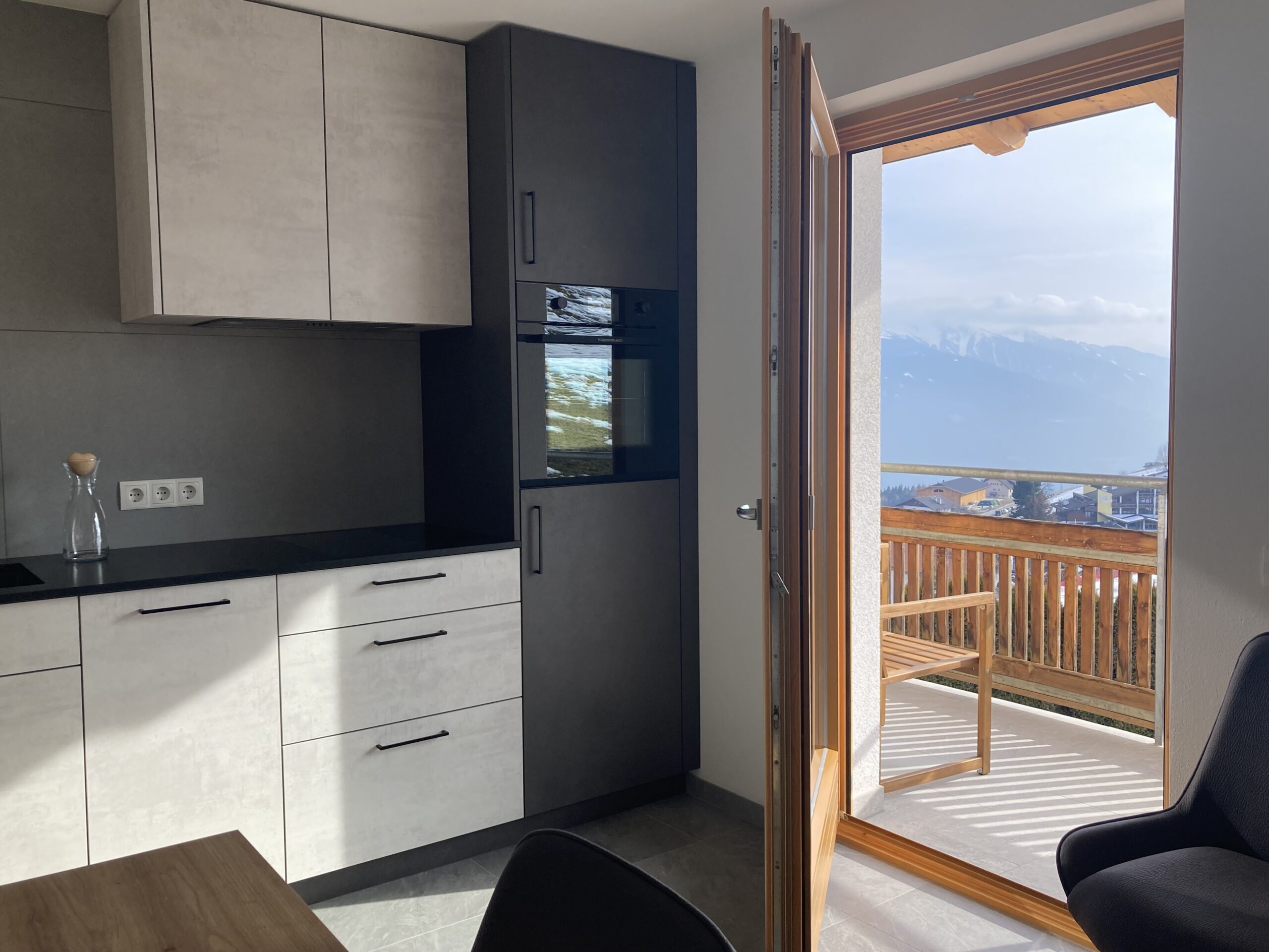 Die Wohnung Alpin ist 43 m² groß und bietet Platz für 2-4 Personen. Sie befindet sich auf der Südwestseite im 1. Stock.